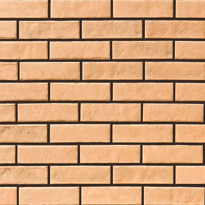 Облицовочная плитка под кирпич Денвер 955 состоит из отдельных плиток формата 238х72 мм однотонного ярко-бежевого цвета. Толщина 12 мм дает слегка заглубить шов, что придаст дополнительный рельеф покрытию и облик, максимально приближенный к настоящей кирпичной кладке. Рекомендуемая ширина шва 12 мм.