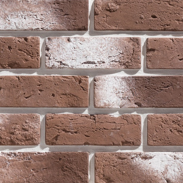 Облицовочная плитка под кирпич Лион 401 состоит из отдельных плиток формата 210х65 мм однотонного коричневого цвета с заметными высолами. Толщина 12 мм дает возможность слегка заглубить шов, что придаст дополнительный рельеф покрытию и облик, максимально приближенный к настоящей кирпичной кладке. Рекомендуемая ширина шва 12 мм.