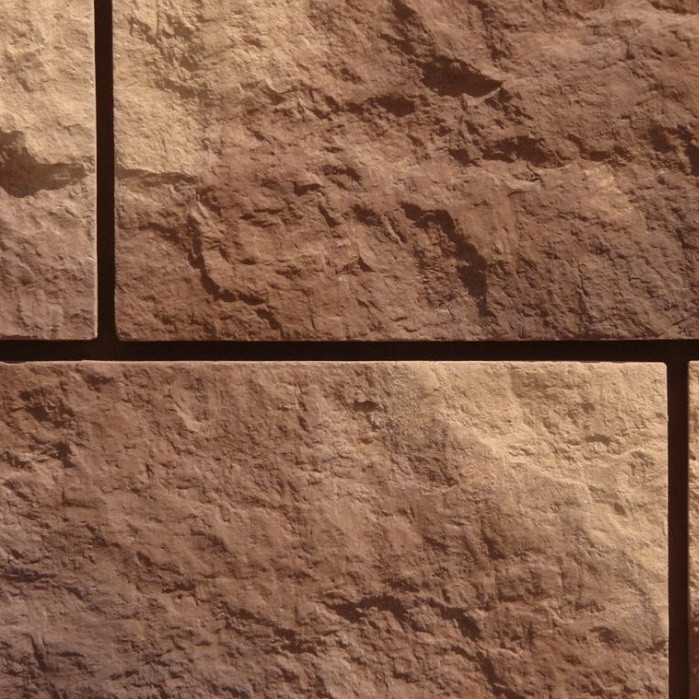Облицовочный камень Милан 335 состоит из плит формата 385х195 мм коричневого с оттенками цвета. Толщина 20 мм дает возможность заглубить шов, что придаст поверхности интересный рельеф, максимально приближенный к средневековой каменной кладке. Рекомендуемая ширина шва 15 мм.
