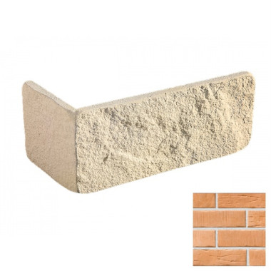 Угловая плитка Нью-Йорк 955 представляет собой единый элемент формата 237х113х72 мм однотонного ярко-бежевого цвета. Полностью соответствует рядовой плитке Нью-Йорк 955.