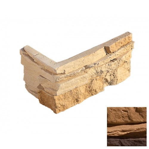 Угловая плитка Верона 885 представляет собой единый элемент формата 200х100х100 мм разнооттеночного коричневого цвета. Полностью соответствует рядовой плитке Верона 885.