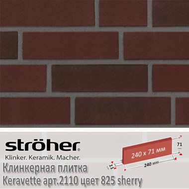 Цвет модели Keravette 2110.825 sherry - вишневый; поверхность - гладкая. Подходит для фасадов, отмосток и цоколей зданий, может применяться при внутренней отделке помещений. Оттенок можно усилить или разбавить, используя затирку различных цветов.