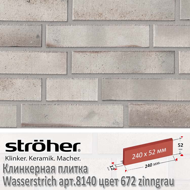 Цвет модели Wasserstrich 8140.672 zinngrau - оловянно-серый; поверхность - шероховатая, с эффектом изъеденной водой повехности. Подходит для фасадов и цоколей зданий, может применяться при внутренней отделке помещений. Оттенок можно усилить или разбавить, используя затирку различных цветов.