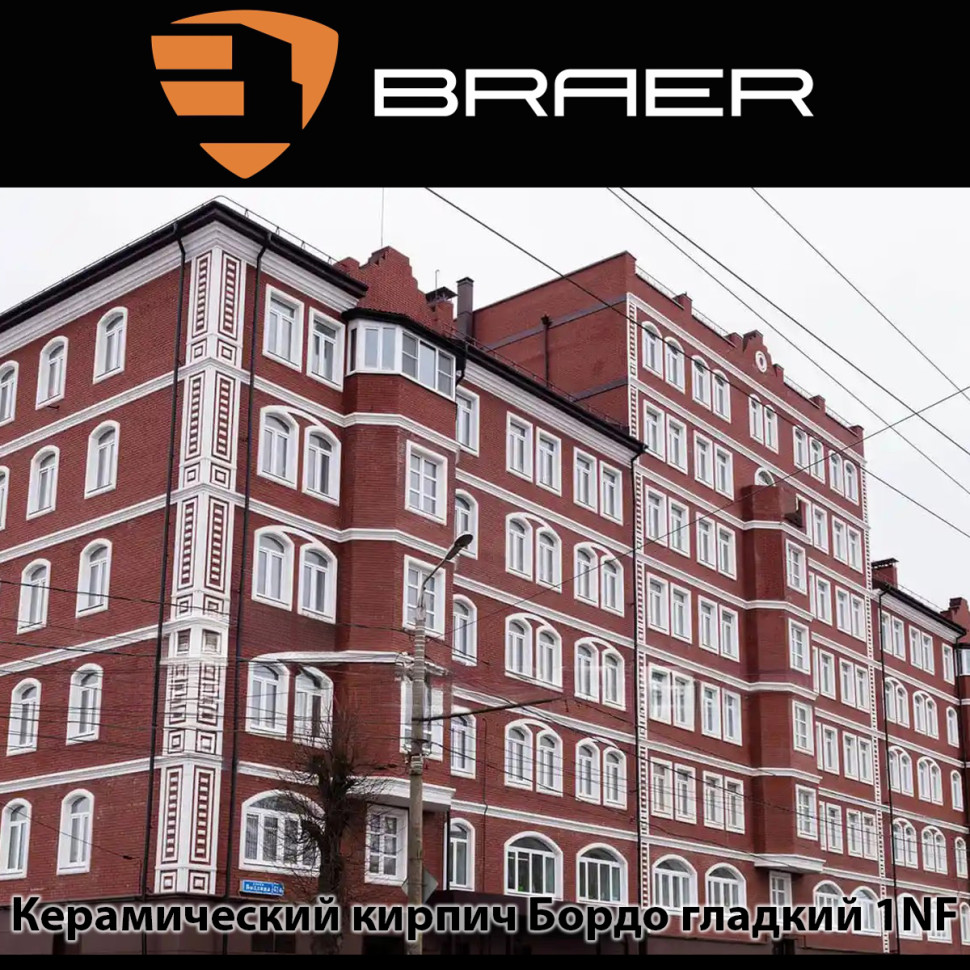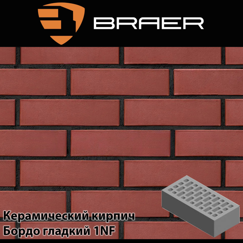 Облицовочный керамический кирпич БРАЕР бордо гладкий формат 1НФ