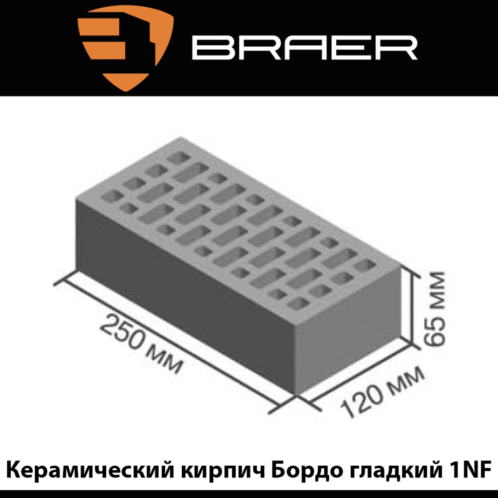 Керамический кирпич Браер представлен в формате 1НФ (одинарный):