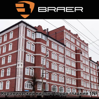 Лицевой кирпич BRAER - материал, который используется для декоративной отделки фасадов зданий. Помимо привлекательного внешнего вида керамические кирпичи Браер отличают превосходные эксплуатационные характеристики - оптимальная паропроницаемость, что благоприятно сказывается на микроклимате в помещении, низкая теплопроводность - фасад, облицованный керамическим кирпичом, плохо пропускает тепло наружу зимой, а внутрь – летом, высокая прочность и износоустойчивость, стойкость к перепадам температуры и климатическим воздействиям. К несомненным достоинствам стоит отнести повышенную звукоизоляцию, пожаростойкость, кроме того, пустотелые кирпичи имеют небольшой вес, что значительно снижает нагрузку на стены и облегчает монтаж. Конечно, клинкерный кирпич - материал пористый, но параметр водопоглощения составляет всего 6-9%, а для уменьшения вероятности появления высолов фасады можно обработать гидрофобизатором. Высокая цена керамической облицовки окупается долгим сроком эксплуатации фасадов - при соблюдении технологии монтажа долговечность стены из поризованного блока и лицевого кирпича BRAER составляет 200 лет. Кирпичный завод BRAER выпускает щелевой керамический кирпич классического формата НФ в вариантах: 1 - одинарный, 0.7 - евро кирпич, 1.4 - полуторный. Разнообразная фактура (гладкая, рифлёная, кора дуба, терра) и классическая цветовая палитра изделий позволяют воплощать самые смелые дизайнерские решения.