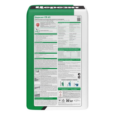 Жесткая цементная гидроизоляция Церезит CR 65 – представляет собой сухую смесь на основе цемента, минеральных наполнителей и специальных модифицирующих добавок, которая наносится на поверхности стен и полов для обеспечения водонепроницаемости конструкций. Предназначена для обеспечения гидроизоляции бетонных, кирпичных и цементных оснований для наружных и внутренних работ. Данная гидроизоляционная смесь является жесткой или, другими словами, предназначена для применения на основаниях, НЕ ПОДВЕРЖЕННЫХ ДЕФОРМАЦИЯМ, например, фундаментах и других заглубленных конструкциях, небольших монолитных ваннах крытых бассейнов и резервуарах с водой. Отлично подходит для гидроизоляции помещений - в ванных комнатах и туалетах, а также в качестве гидроизоляции промышленных помещений.