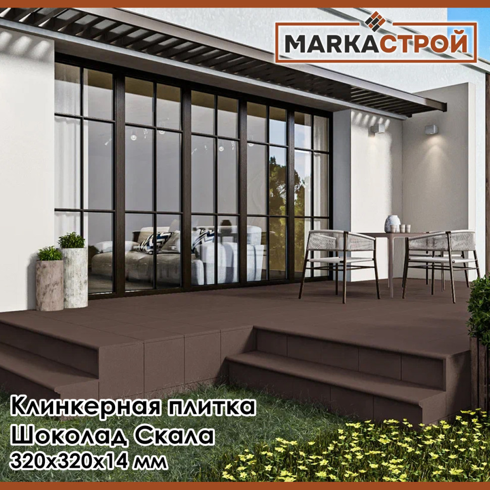 Клинкерная напольная плитка Маркастрой Шоколад Скала 320х320 мм толщина 14 мм