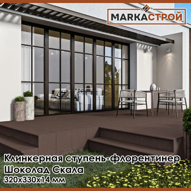 Клинкерная флорентийская ступень Маркастрой Шоколад Скала 320х330 мм толщина 14 мм