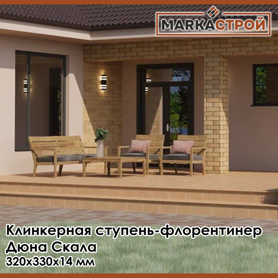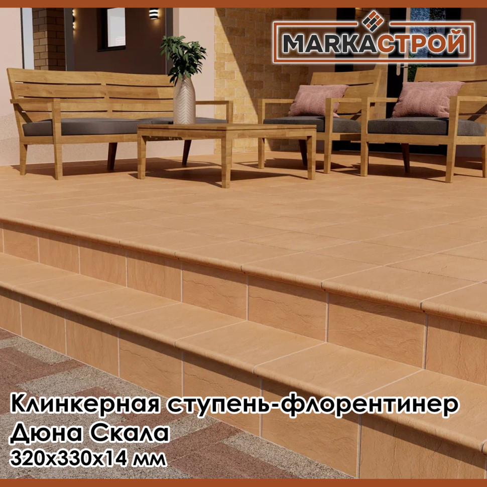Клинкерная флорентийская ступень Маркастрой Дюна Скала 320х330 мм толщина 14 мм