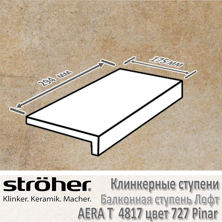 Клинкерная балконная ступень Stroeher Aera T лофт 294 х 175 х 52 х 10 мм цвет 4817.0727 pinar