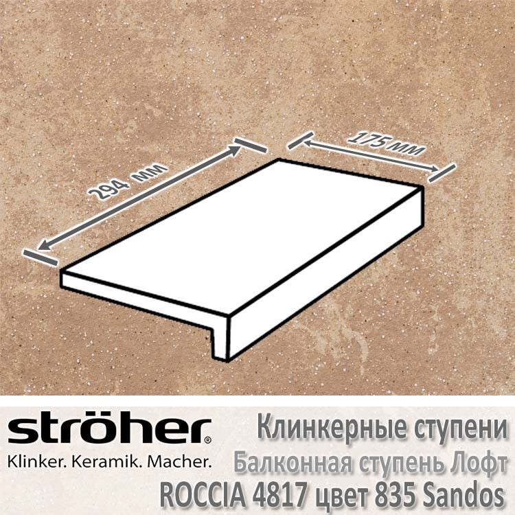 Клинкерная балконная ступень Stroeher Roccia лофт 294 х 175 х 52 х 10 мм цвет 4817.0835 sandos