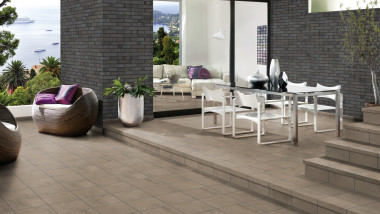 Клинкерная балконная ступень представляет собой фигурную плитку небольшого размера для укладки на край стяжки или лестничного марша. Она имеет прямой капинос, который оформляет край ступени. Все клинкерные балконные ступени сочетаются с напольной плиткой той же серии и цвета – поэтому их спектр применения широк – они используются как для облицовки полов внутри помещений, так и для уличной облицовки входных зон, террас, зон патио и отмосток.