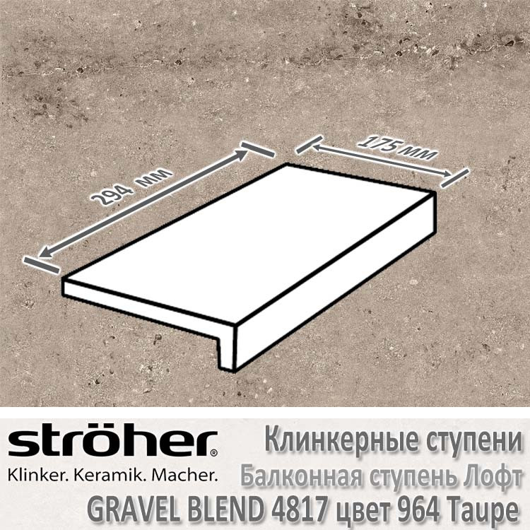 Ступень клинкерная балконная лофт Stroeher Gravel Blend 294 х 175 х 52 х 10 мм цвет 4817.0964 taupe