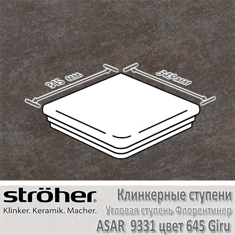 Клинкерная угловая ступень Stroher серии Asar в цвете 645 Giru (черно-коричневый пестрый) имеет форму Флорентинер (закругленный капинос), толщину в 12 мм и размеры 345 х 345 мм. Имеет коэффициент антискольжения R10 (не скользит при ходьбе в обуви), что раскрывает возможности применения как внутри помещений, так и на улице без риска поскользнуться даже в осенне-зимний период. При укладке рекомендуется соблюдать шов в 3-5 мм. Швы заполняются затирками для плитки.