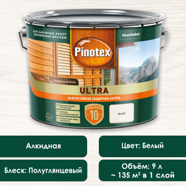 Декоративная лазурь для защиты древесины Pinotex Ultra белая ведро 9 л