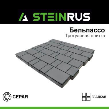 Тротуарная плитка STEINRUS Бельпассо серого цвета