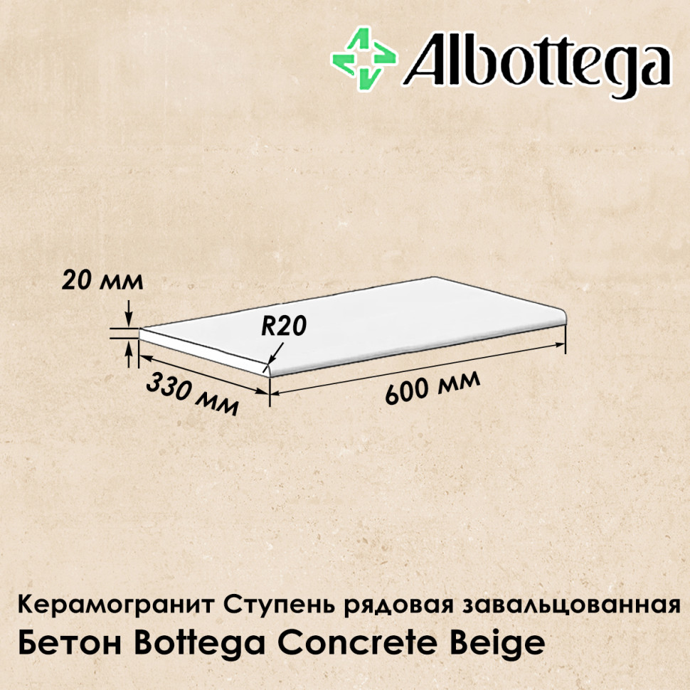 Ступень рядовая завальцованная Albottega коллекция Бетон Bottega Concrete Beige 60х33 см