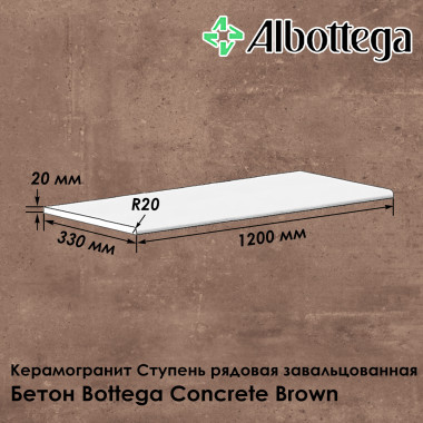 Ступень рядовая завальцованная Albottega коллекция Бетон Bottega Concrete Brown 120х33 см