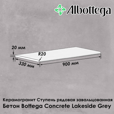 Ступень рядовая завальцованная Albottega коллекция Бетон Bottega Concrete Lakeside Grey 90х33 см