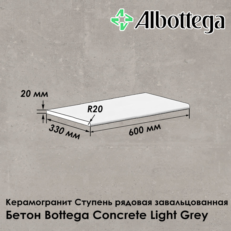 Ступень рядовая завальцованная Albottega коллекция Бетон Bottega Concrete Light Grey 60х33 см