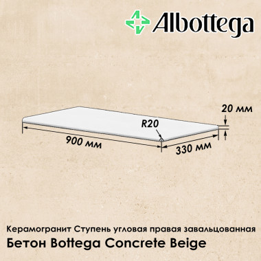 Ступень угловая правая завальцованная Albottega коллекция Бетон Bottega Concrete Beige 90х33 см