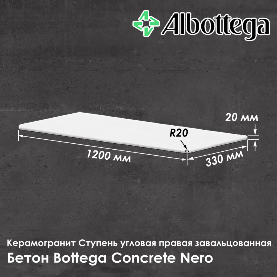 Ступень угловая правая завальцованная Albottega коллекция Бетон Bottega Concrete Nero 120х33 см