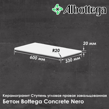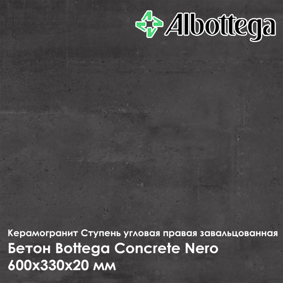 Ступень угловая правая завальцованная Albottega коллекция Бетон Bottega Concrete Nero 60х33 см