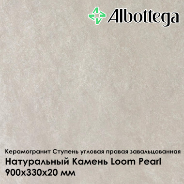 Керамогранитная ступень Albottega коллекции Натуральный Камень Loom в цвете Pearl - светло-серый неоднородный с разводами, представлена в формате 90х33 см, где 33 см - глубина ступени, а 90 см - её длина. Толщина ступени 20 мм. Ступень угловая правая (предназначена для оформления лестничной ступени с правой стороны), завальцованная (имеет скруглённый край). Поверхность - неполированная, шероховатая, имитирует фактуру скалы или необработанного камня с трещинками, класс противоскольжения R11, что обеспечивает максимальную безопасность на лестницах, в местах, где бывает скопление воды (зоны вокруг бассейнов), а также во время осадков - дождя и снега - при уличном мощении. Коллекция Натуральный Камень Loom наиболее востребована при оформлении пространств в классическом стиле.