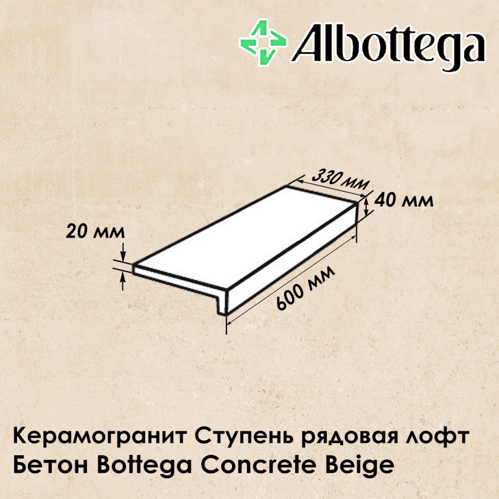 Ступень рядовая лофт Albottega коллекция Бетон Bottega Concrete Beige 60х33 см