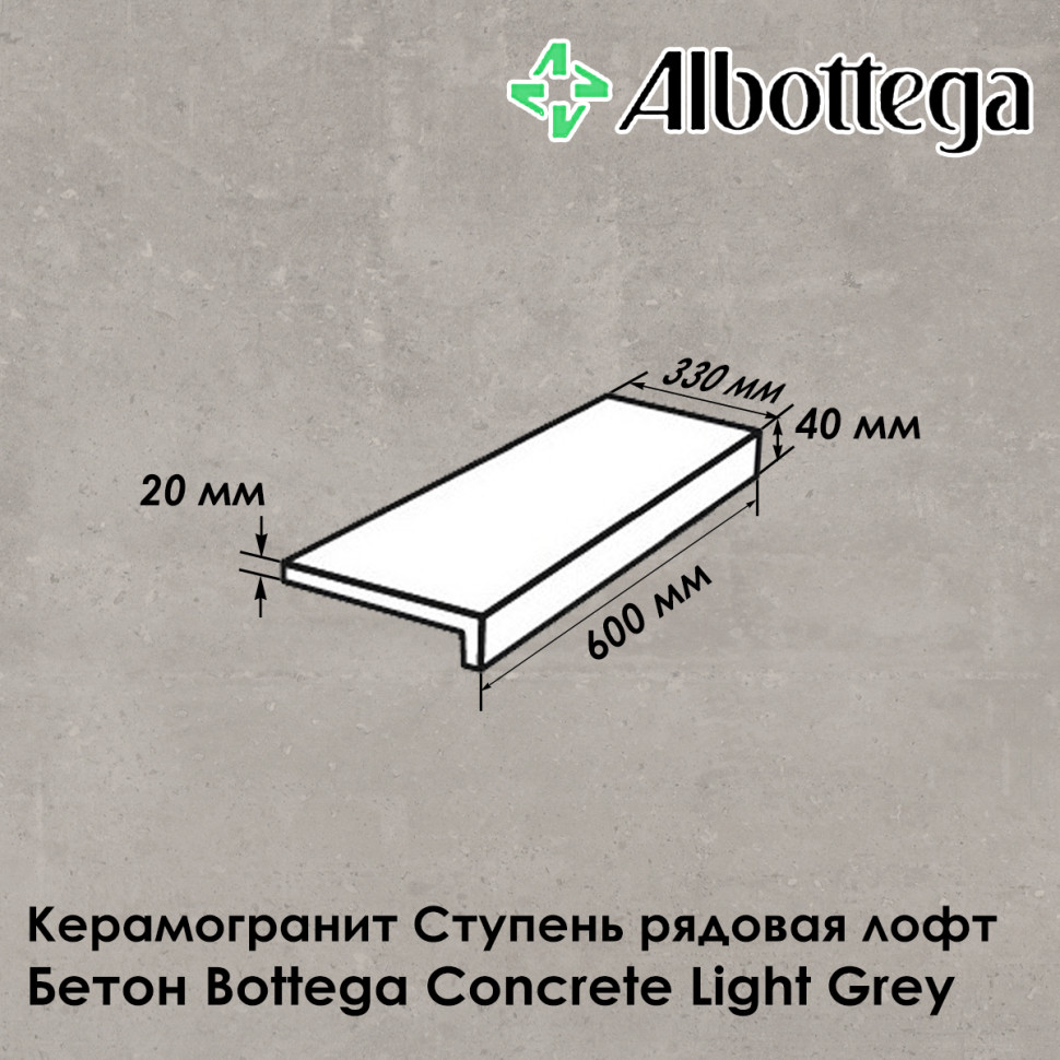 Ступень рядовая лофт Albottega коллекция Бетон Bottega Concrete Light Grey 60х33 см
