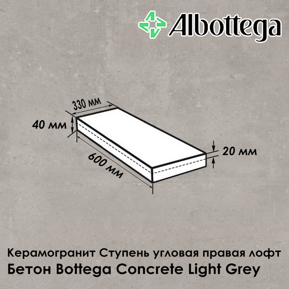 Ступень угловая правая лофт Albottega коллекция Бетон Bottega Concrete Light Grey 60х33 см