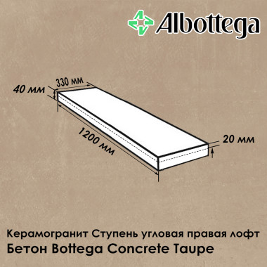 Ступень угловая правая лофт Albottega коллекция Бетон Bottega Concrete Taupe 120х33 см