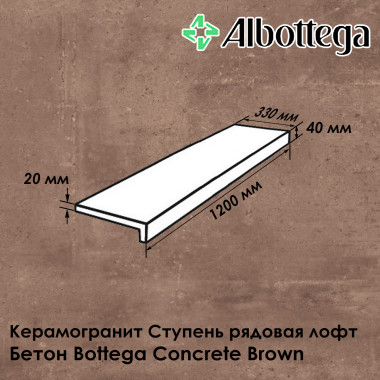 Ступень рядовая лофт Albottega коллекция Бетон Bottega Concrete Brown 120х33 см