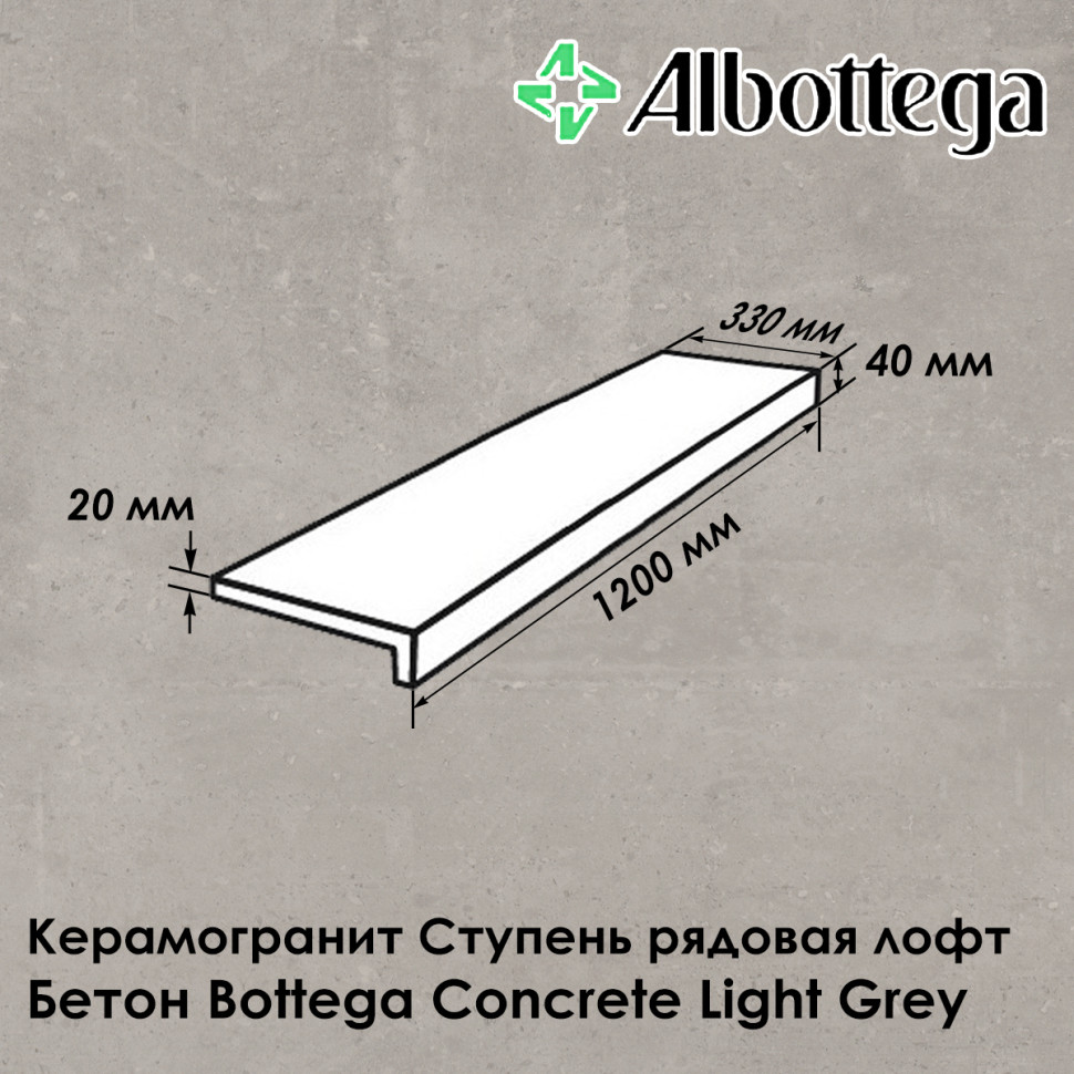 Ступень рядовая лофт Albottega коллекция Бетон Bottega Concrete Light Grey 120х33 см