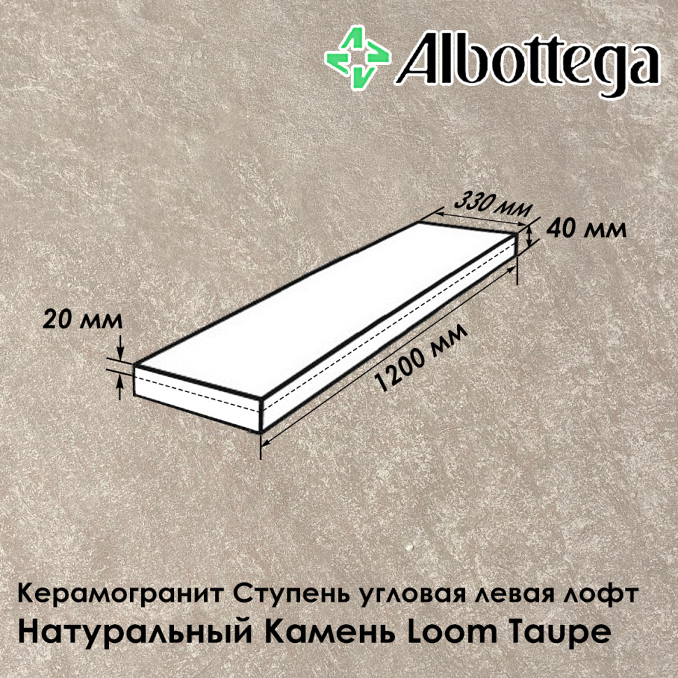 Ступень угловая левая лофт Albottega коллекция Натуральный Камень Loom Taupe 120х33 см