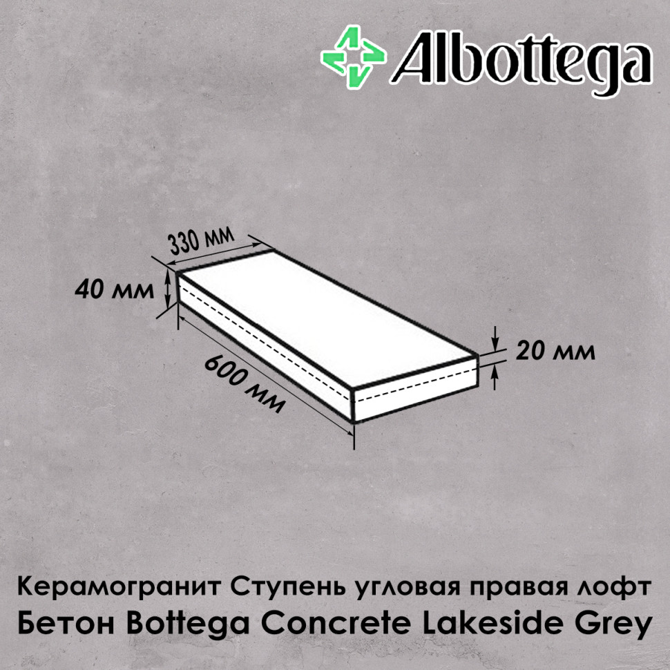 Ступень угловая правая лофт Albottega коллекция Бетон Bottega Concrete Lakeside Grey 60х33 см