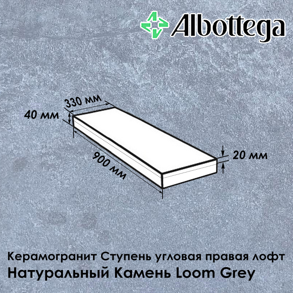 Ступень угловая правая лофт Albottega коллекция Натуральный Камень Loom Grey 90х33 см