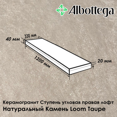 Ступень угловая правая лофт Albottega коллекция Натуральный Камень Loom Taupe 120х33 см