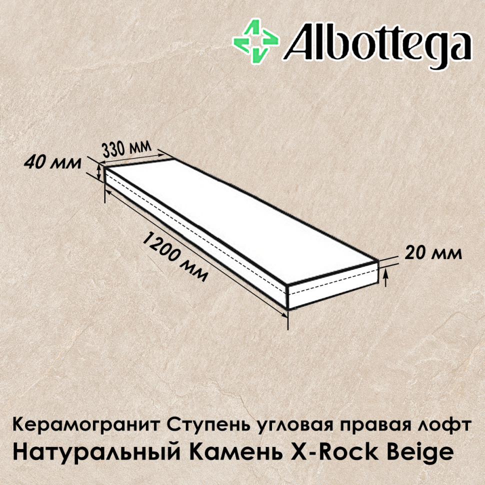 Ступень угловая правая лофт Albottega Натуральный камень X-Rock Beige 120х33 см