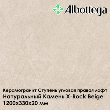 Керамогранитная ступень Albottega коллекции Натуральный камень X-Rock в цвете Beige - бежевый неоднородный с прожилками, представлена в формате 120х33 см, где 33 см - глубина ступени, а 120 см - её длина. Толщина ступени 20 мм. Ступень угловая правая (предназначена для оформления лестничной ступени с правой стороны), лофт (имеет прямой капинос). Поверхность - неполированная, шероховатая, имитирует фактуру скалы или необработанного камня с трещинками, класс противоскольжения R11, что обеспечивает максимальную безопасность на лестницах, в местах, где бывает скопление воды (зоны вокруг бассейнов), а также во время осадков - дождя и снега - при уличном мощении. Коллекция Натуральный Камень X-Rock наиболее востребована при оформлении пространств в классическом стиле.