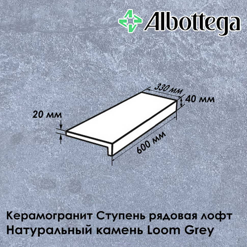 Ступень рядовая лофт Albottega Натуральный камень Loom Grey 60х33 см