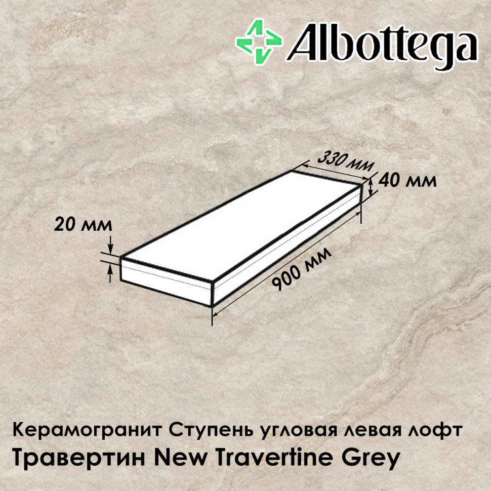 Ступень угловая левая лофт Albottega Травертин New Travertine Grey 90х33 см