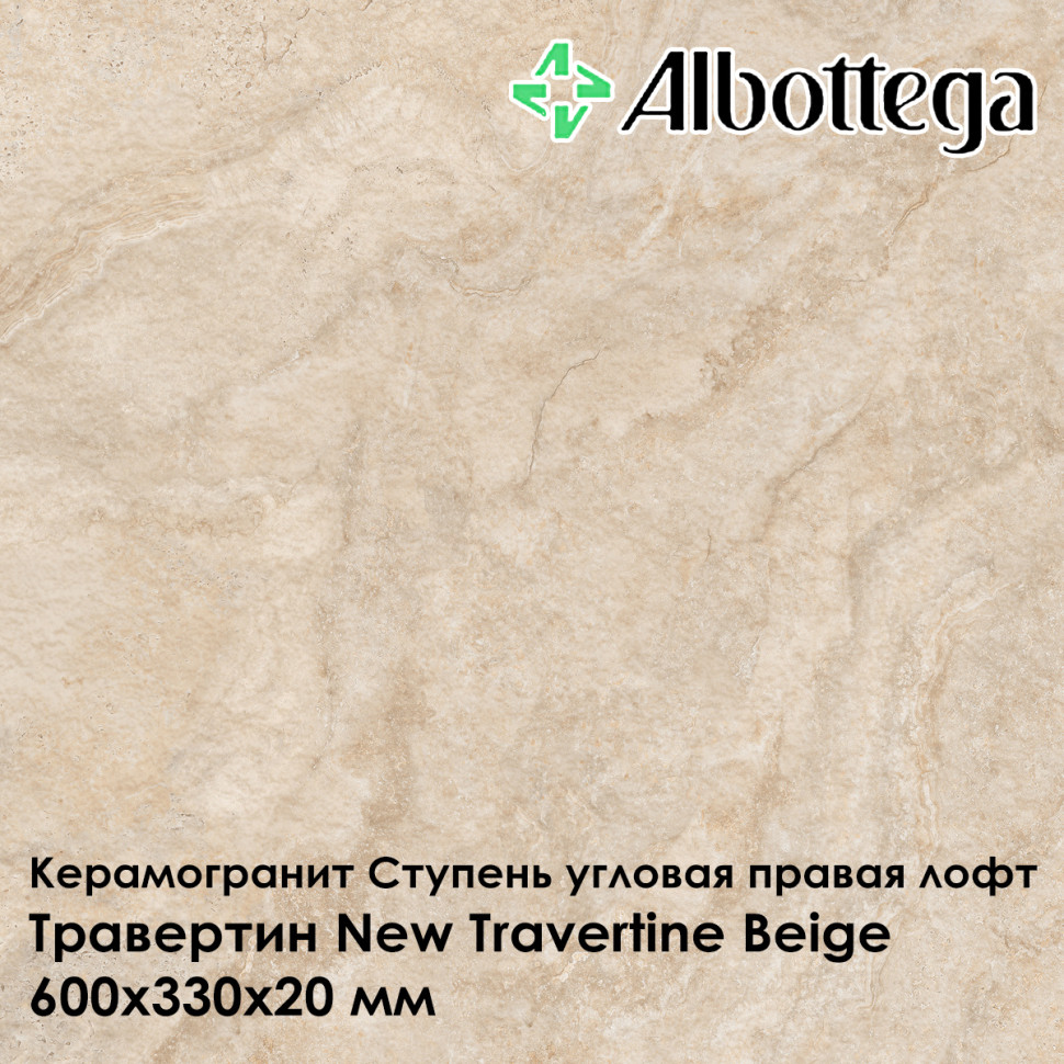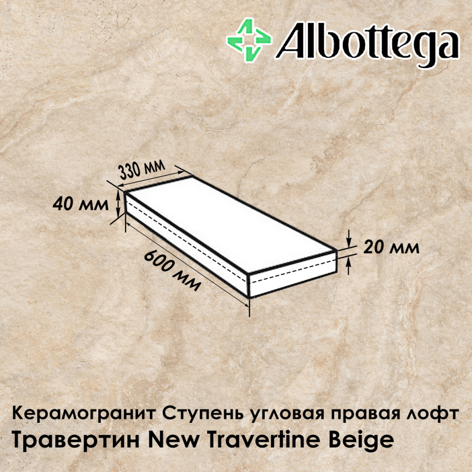 Ступень угловая правая лофт Albottega Травертин New Travertine Beige 60х33 см