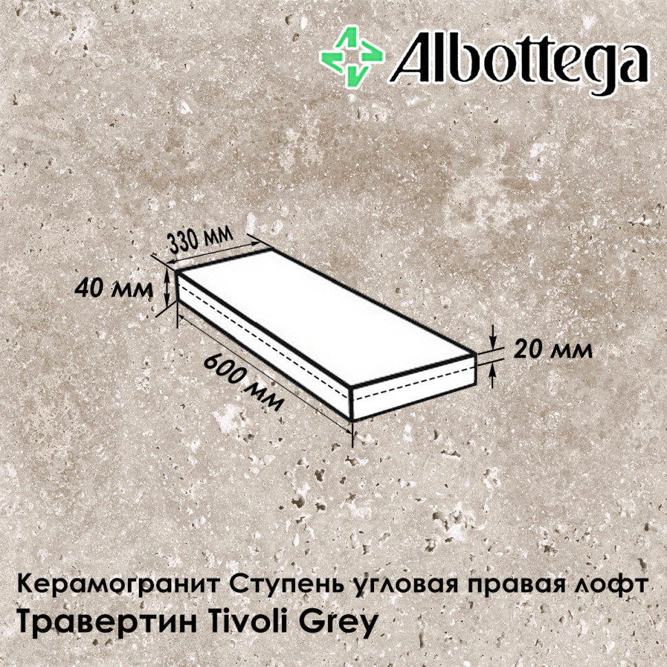 Ступень угловая правая лофт Albottega Травертин Tivoli Grey 60х33 см