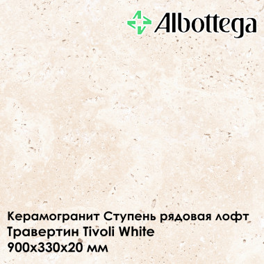 Керамогранитная ступень Albottega коллекции Травертин в цвете Tivoli White - белый, умеренно пёстрый, с рисунком, представлена в формате 90х33 см, где 33 см - глубина ступени, а 90 см - её длина. Толщина ступени 20 мм. Ступень рядовая (предназначена для устройства лестничного марша), лофт (имеет прямой капинос). Поверхность - неполированная, шероховатая, имитирует природный камень травертин с выбоинами и кавернами, класс противоскольжения R11, что обеспечивает максимальную безопасность на лестницах, в местах, где бывает скопление воды (зоны вокруг бассейнов), а также во время осадков - дождя и снега - при уличном мощении. Коллекция Травертин универсальна и востребована при оформлении пространств в различных стилях - от классического до современного. Расход составляет 1.1 шт./пог.м.