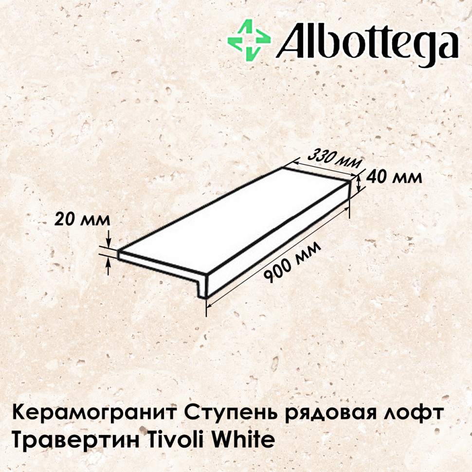 Ступень рядовая лофт Albottega Травертин Tivoli White 90х33 см