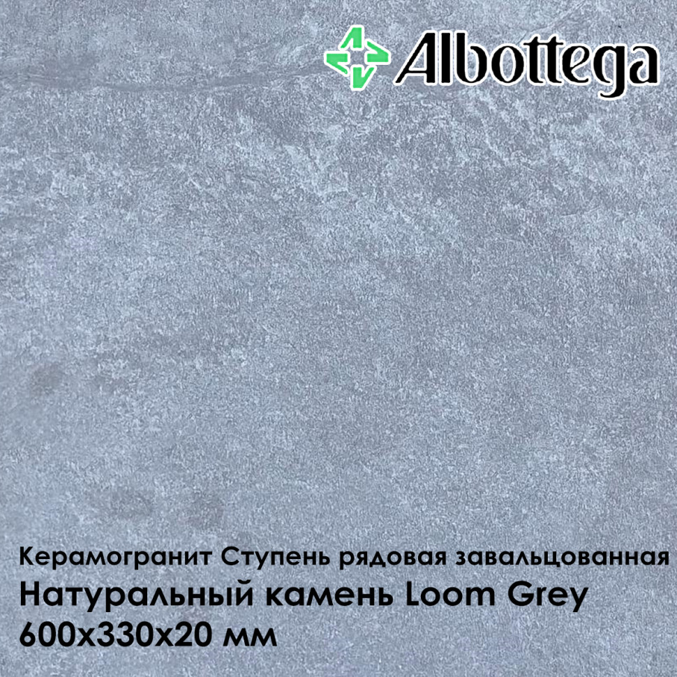 Керамогранитная ступень Albottega коллекции Натуральный камень Loom в цвете Grey - серый неоднородный с разводами, представлена в формате 60х33 см, где 33 см - глубина ступени, а 60 см - её длина. Толщина ступени 20 мм. Ступень рядовая (предназначена для устройства лестничного марша), завальцованная (имеет скруглённый край). Поверхность - неполированная, шероховатая, имитирует фактуру скалы или необработанного камня с трещинками, класс противоскольжения R11, что обеспечивает максимальную безопасность на лестницах, в местах, где бывает скопление воды (зоны вокруг бассейнов), а также во время осадков - дождя и снега - при уличном мощении. Коллекция Натуральный Камень Loom наиболее востребована при оформлении пространств в классическом стиле. Расход составляет 1.6 шт./пог.м.