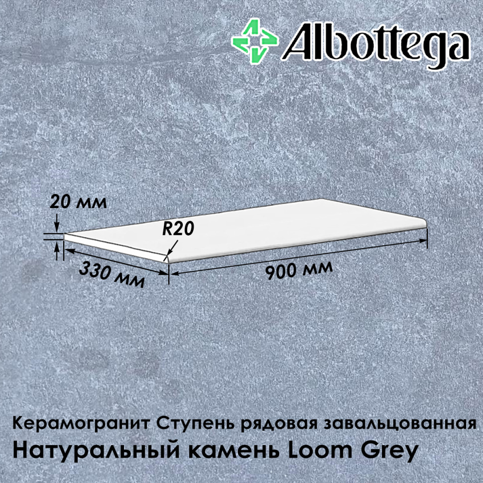 Ступень рядовая закруглённая Albottega Натуральный камень Loom Grey 90х33 см