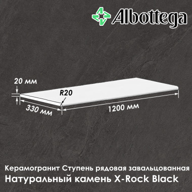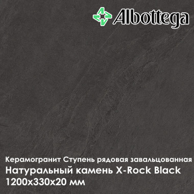 Керамогранитная ступень Albottega коллекции Натуральный камень X-Rock в цвете Black - чёрный неоднородный с прожилками, представлена в формате 120х33 см, где 33 см - глубина ступени, а 120 см - её длина. Толщина ступени 20 мм. Ступень рядовая (предназначена для устройства лестничного марша), завальцованная (имеет скруглённый край). Поверхность - неполированная, шероховатая, имитирует фактуру скалы или необработанного камня с трещинками, класс противоскольжения R11, что обеспечивает максимальную безопасность на лестницах, в местах, где бывает скопление воды (зоны вокруг бассейнов), а также во время осадков - дождя и снега - при уличном мощении. Коллекция Натуральный Камень X-Rock наиболее востребована при оформлении пространств в классическом стиле. Расход составляет 0.83 шт./пог.м.
